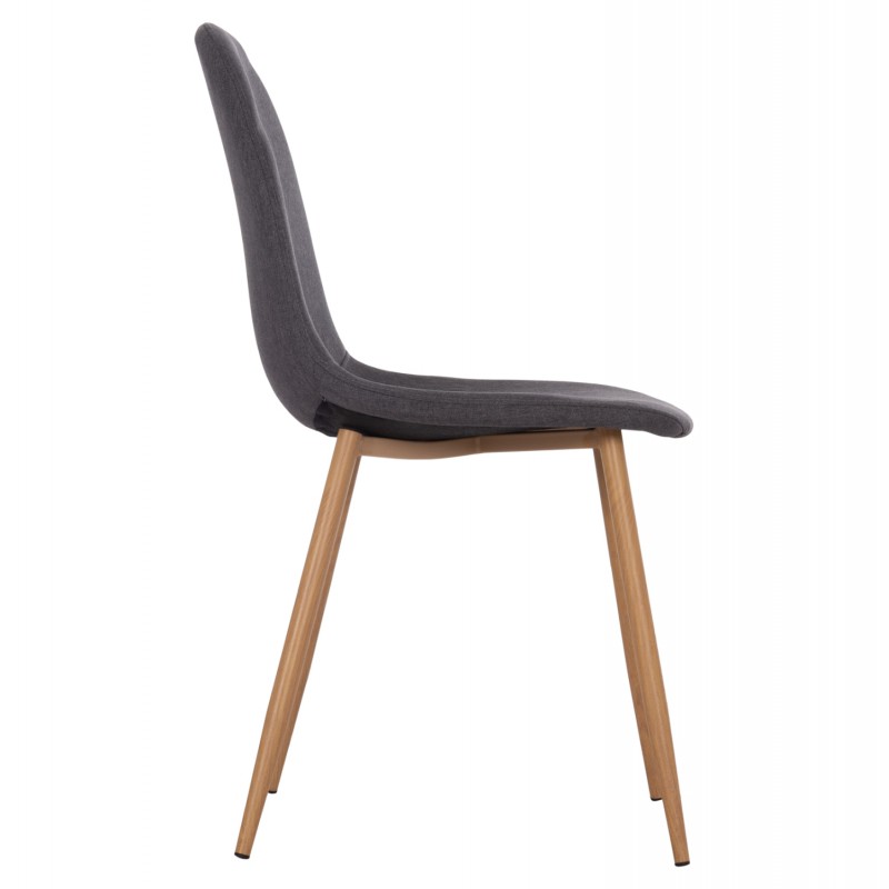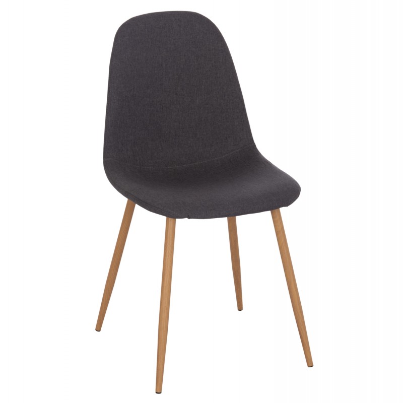 Η κατασκευή της είναι από μέταλλο και ύφασμα ενώ το κάθισμα της καρέκλας είναι επενδυμένο με ύφασμα σε γκρι απόχρωση. Τα πόδια είναι μεταλλικά για μεγαλύτερη αντοχή, βαμμένα στο χρώμα του ξύλου, δίνοντας τους την όψη του φυσικού.